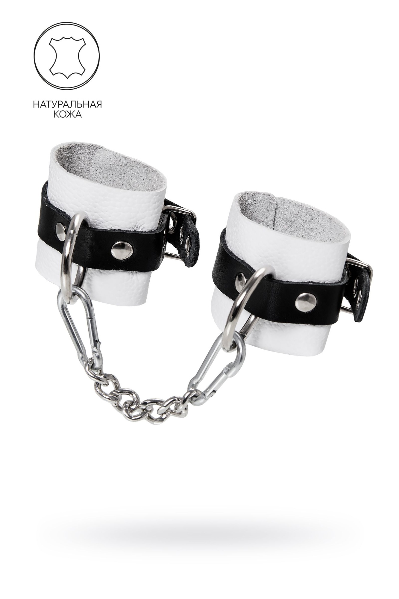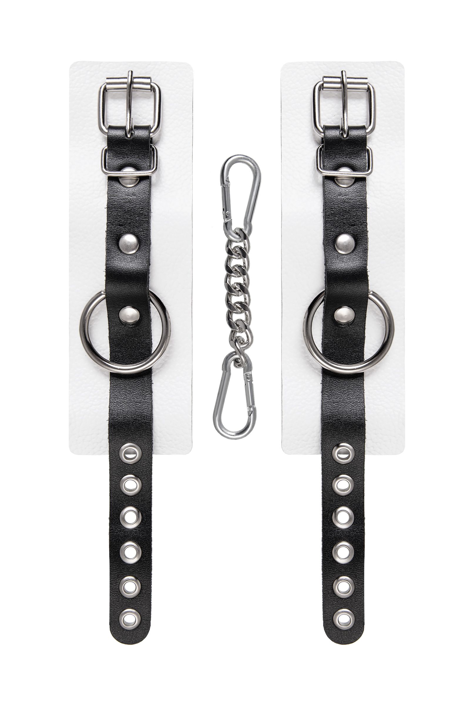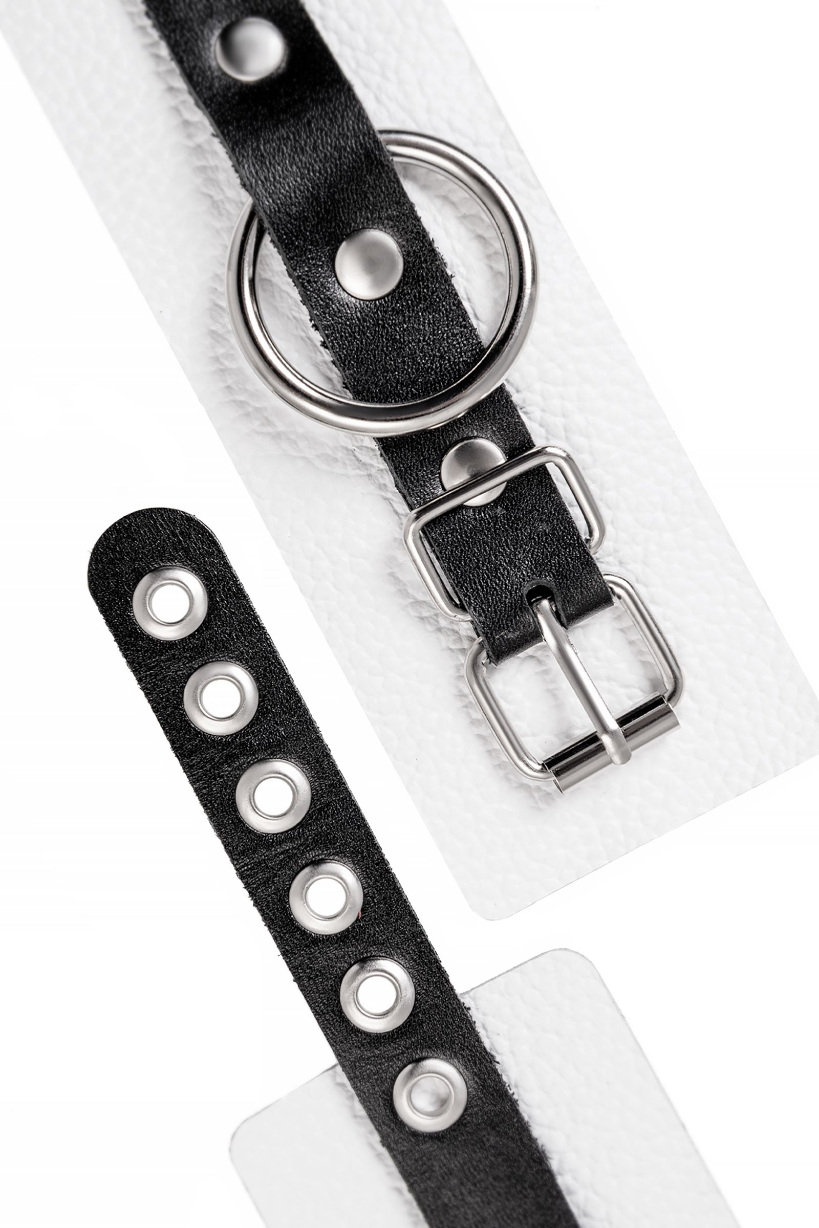 Бело-черные кожаные наручники с одним ремешком с люверсами