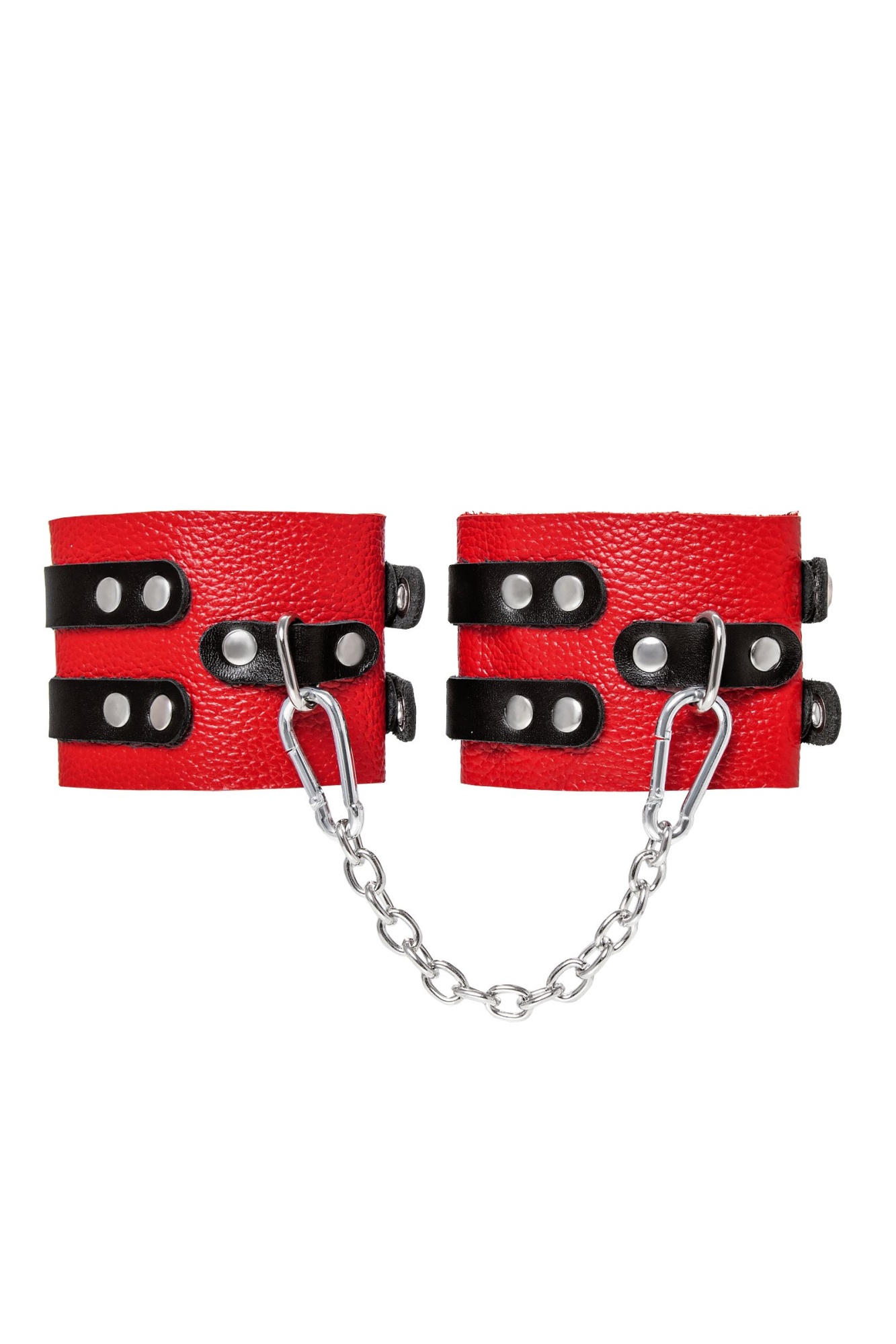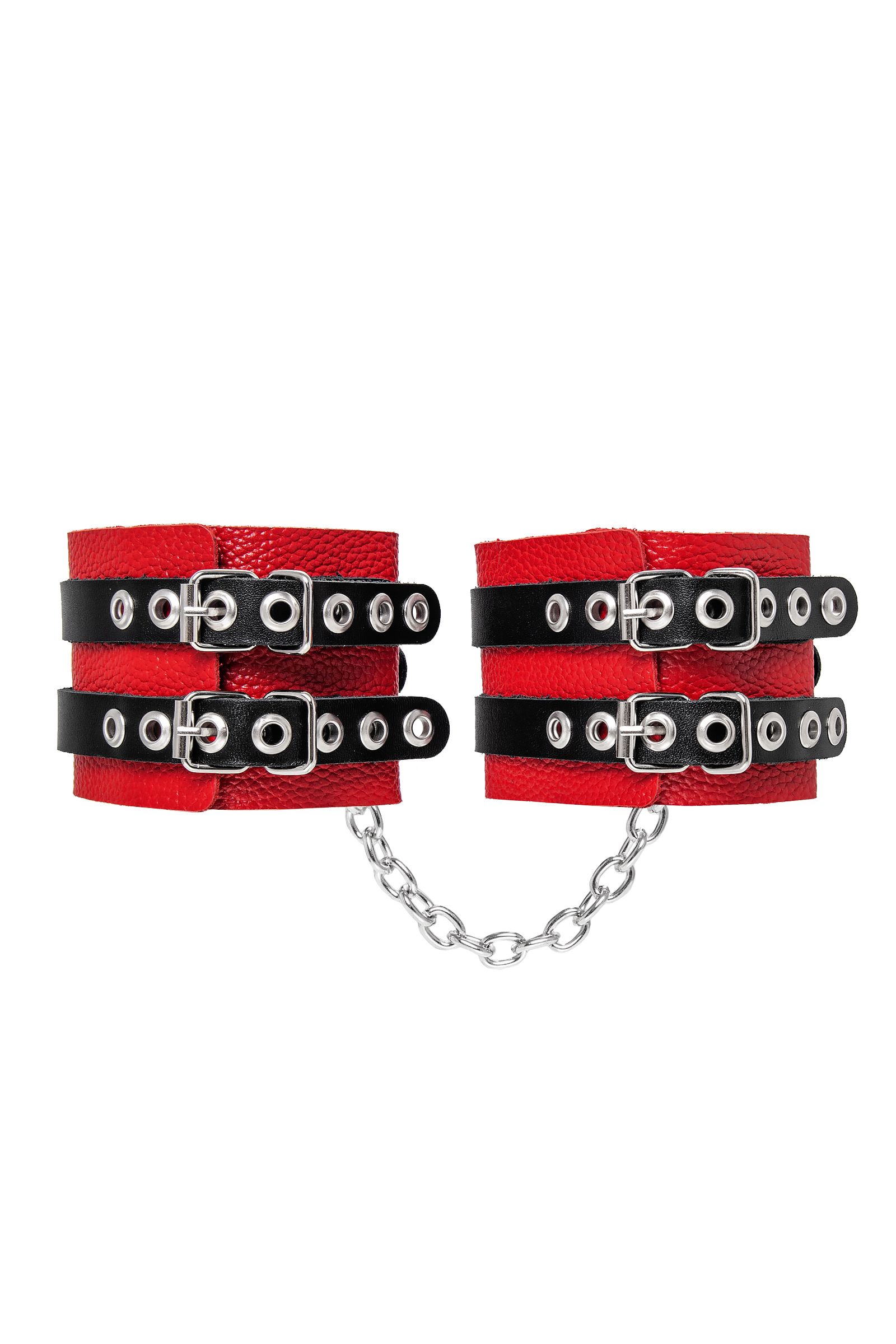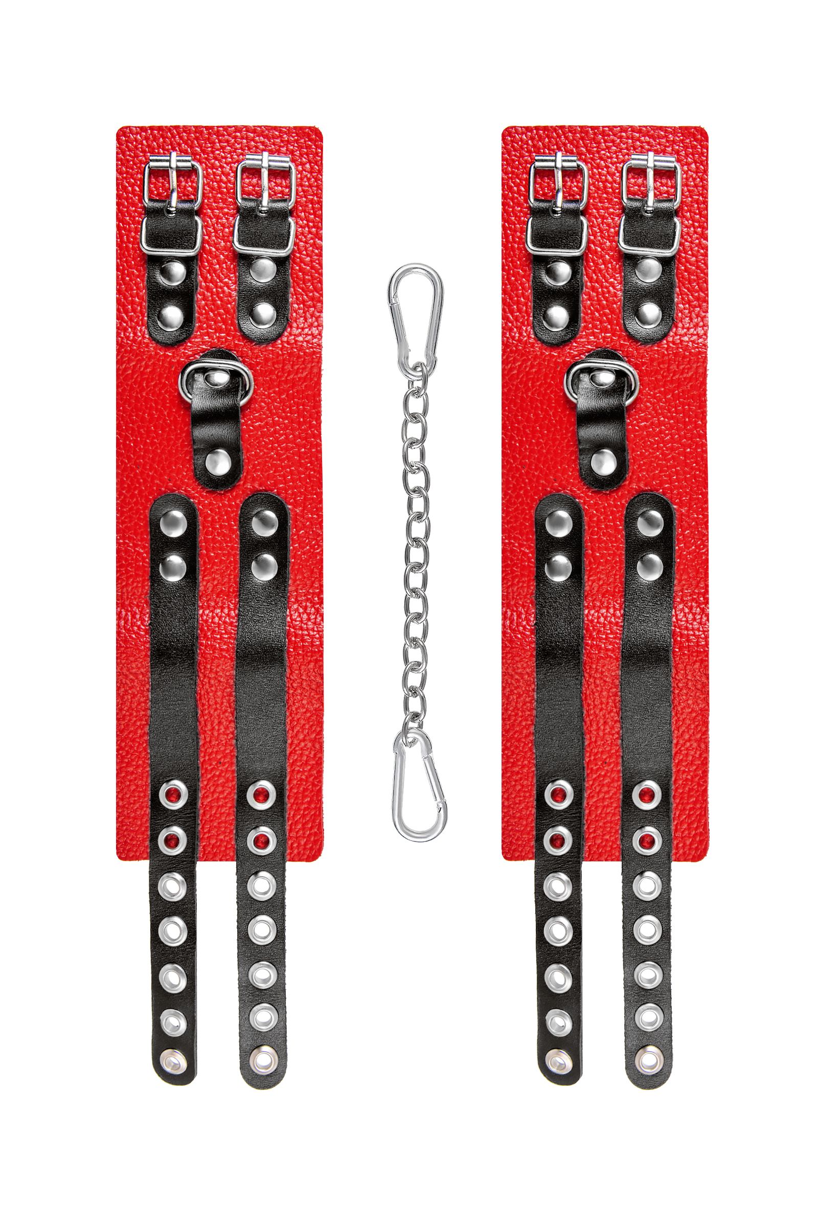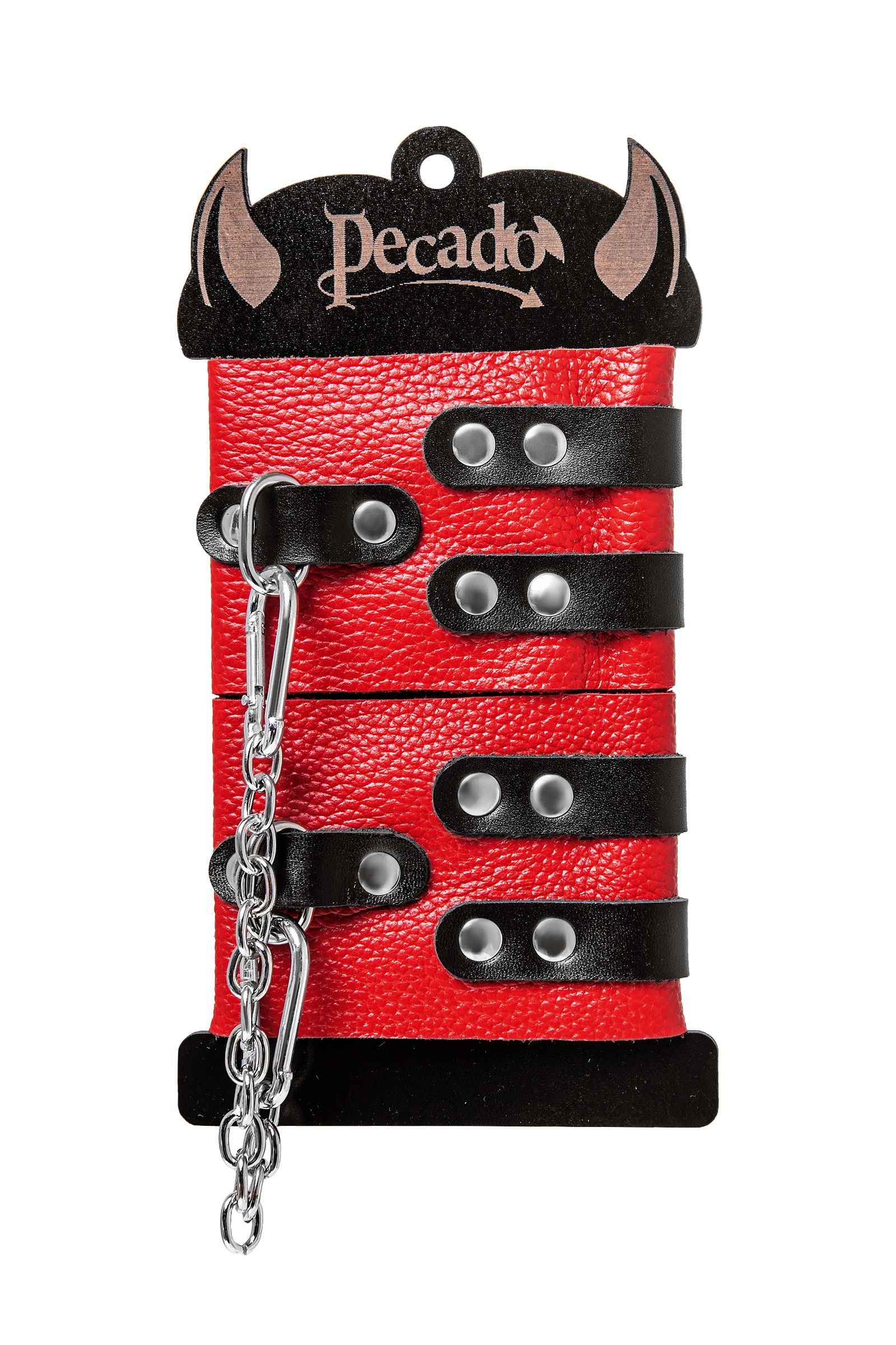 Мягкие оковы с двумя жёсткими ремешками от Pecado помогут обездвижить партнера во время сексуальных прелюдий или жестких БДСМ-играх. Оковы изготовлены полностью из красной, натуральной кожи. Ремешки выполнены из чёрной жёсткой кожи, украшены люверсами. Выделка материала произведена вручную. Ремешки и широкая манжета хорошо держат форму: не тянутся и не мнутся. Качественная металлическая фурнитура добавляет лоска изделию, а аромат натуральной кожи повышает градус возбуждения. Благодаря широкому запасу регулировок, можно подобрать необходимый обхват. Аксессуар удобно застегивать и легко расстегивать. При правильном использовании не оставляет следов на теле и не доставляет дискомфорта. Манжеты оков соединяется между собой помощью двух карабинов и съемной стальной цепочки. Подходит и для женских, и для мужских ног. Длина манжет - 25 см, ширина - 7 см.