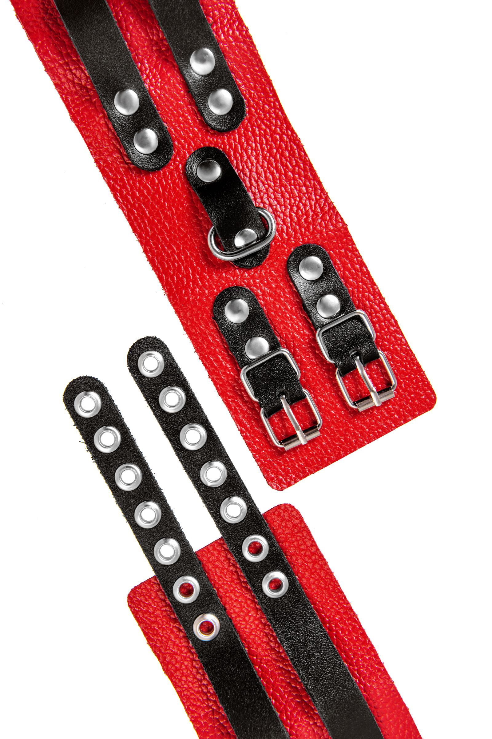 Красно-черные мягкие оковы с двумя ремешками с люверсами