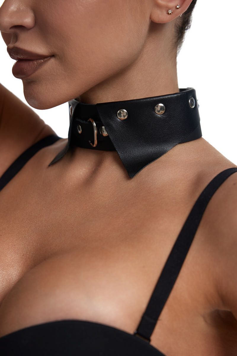 Черный однослойный кожаный ошейник с имитацией воротничка - lovestoryshop.ru