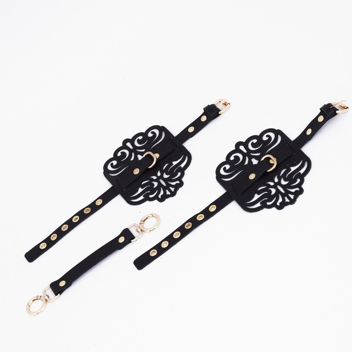 Черный фигурные оковы с золотистой фурнитурой - lovestoryshop.ru