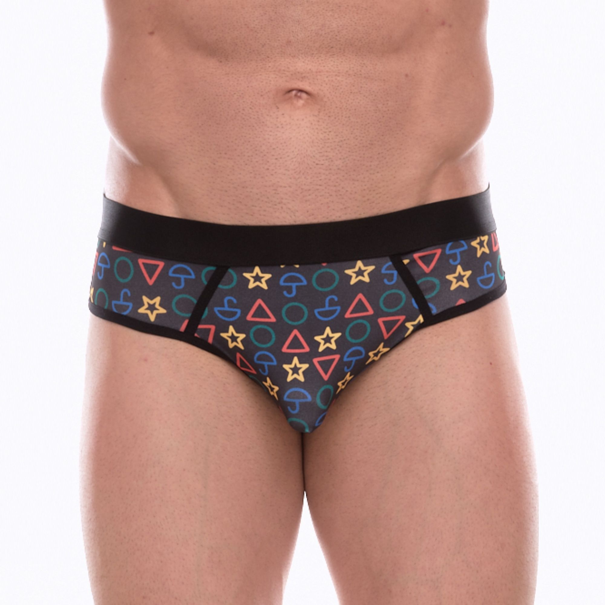 -----Темно-серые мужские трусы-джоки с принтом в виде цветных значков
