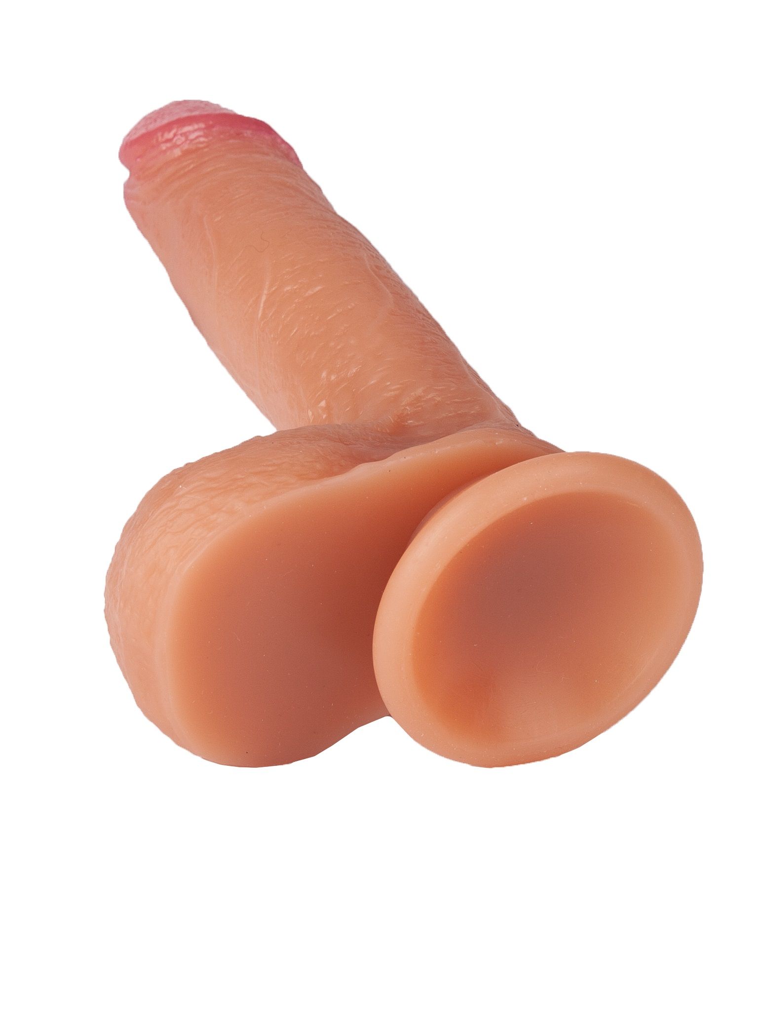 Телесный реалистичный фаллоимитатор из двухслойного силикона. Тактильно похож на живую плоть. Пышная мягкая мошонка для внешней стимуляции и реалистичности ощущений. Ультрареалистичный рельеф поверхности. В основании присоска для фиксации на гладкой твёрдой плоскости. Рабочая длина - 13 см.