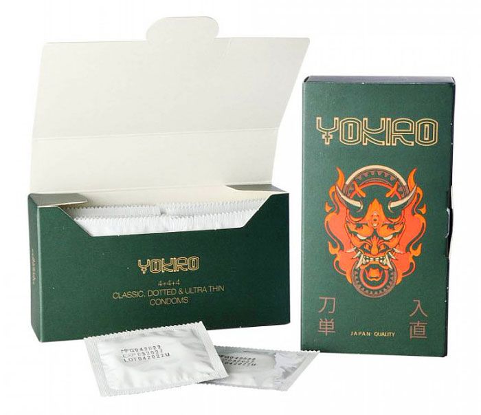 Презервативы YOKIRO ассорти - гладкие классические (4 шт), точечные (4 шт), тонкие (4 шт). Номинальная ширина - 52+/-2 мм.