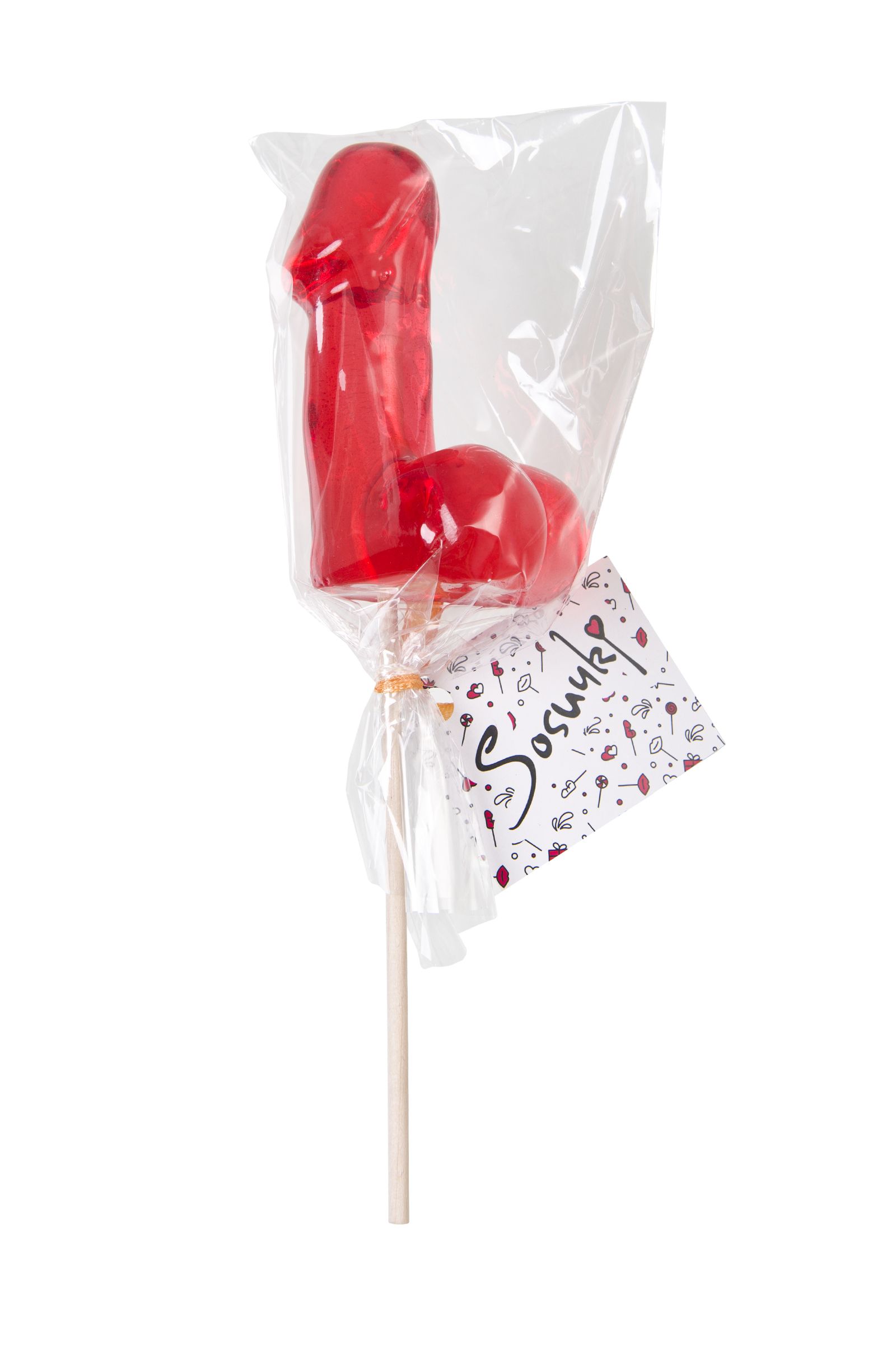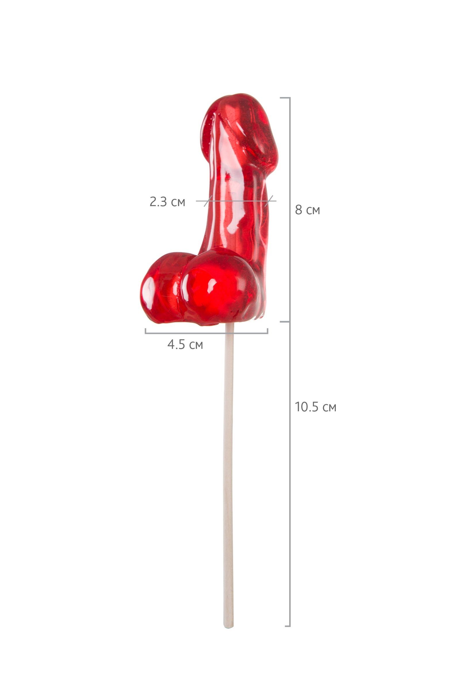 Леденец в форме фаллоса среднего размера от Sosuчki со вкусом подарит неимоверно задорное настроение окружающим! Яркий, сочный, почти как настоящий, но только съедобный. Он вызывают бурю эмоций и увеличивает уровень эндорфинов не только манящим вкусом, но и своим реалистичным видом. Леденец изготовлен полностью вручную, без применения сахара. В составе только безопасные ингредиенты, разрешенные даже диабетикам. Не приторный, в меру сладкий вкус влюбляет каждого, кто познакомится с этим леденцом. Леденец упакован в индивидуальную пленку с изящной лентой. Такая пикантная сладость на бамбуковой палочке - идеальный вариант в качестве озорного презента к любому празднику, тематической вечеринке или фотосессии. Высота леденца - 8 см.