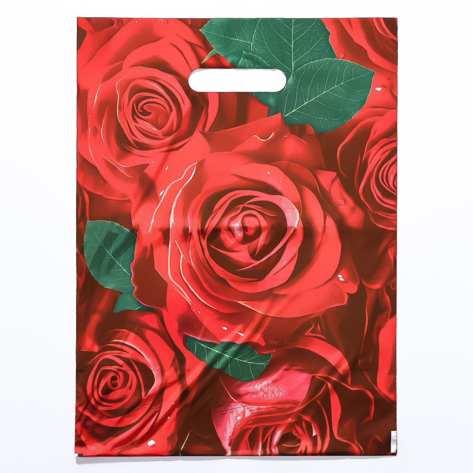 Пакет с цветочным принтом и вырубной ручкой (30х40 см)