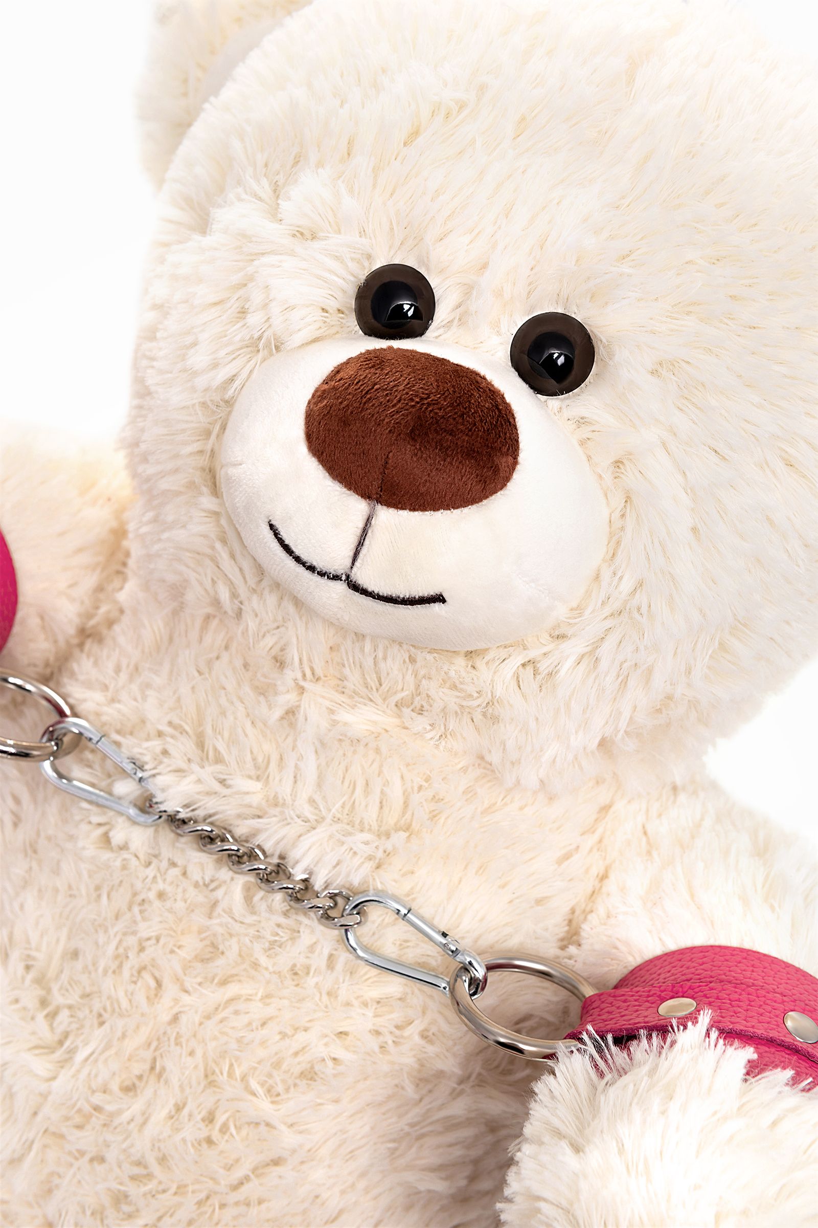 Бондажный набор: белый мишка с розовыми оковами и наручниками - lovestoryshop.ru