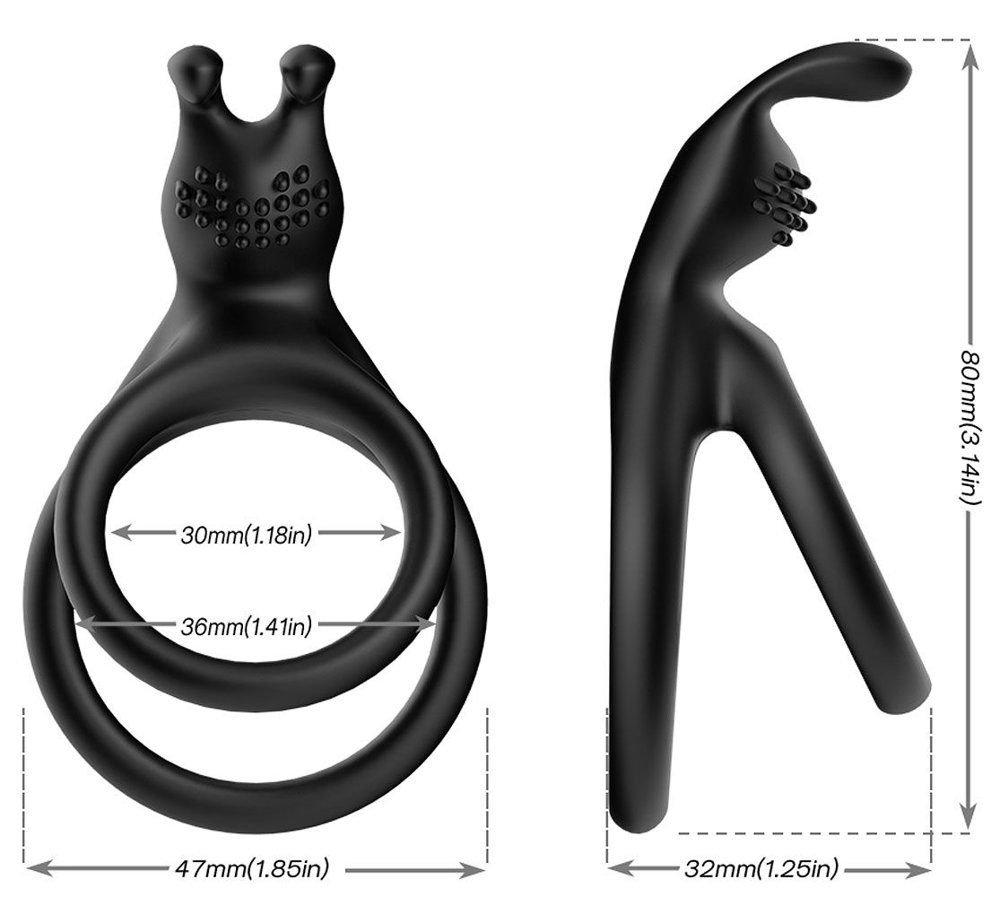 ОписаниеЭрекционное кольцо с дополнительным стимулятором клитора и дополнительным кольцом под мошонку. Внутренний диаметр колец - 3 и 3,6 см.