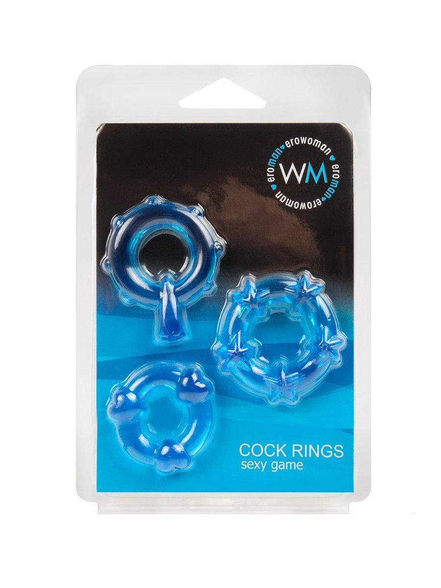 Набор из 3 синих эрекционных колец с различным рельефом - lovestoryshop.ru
