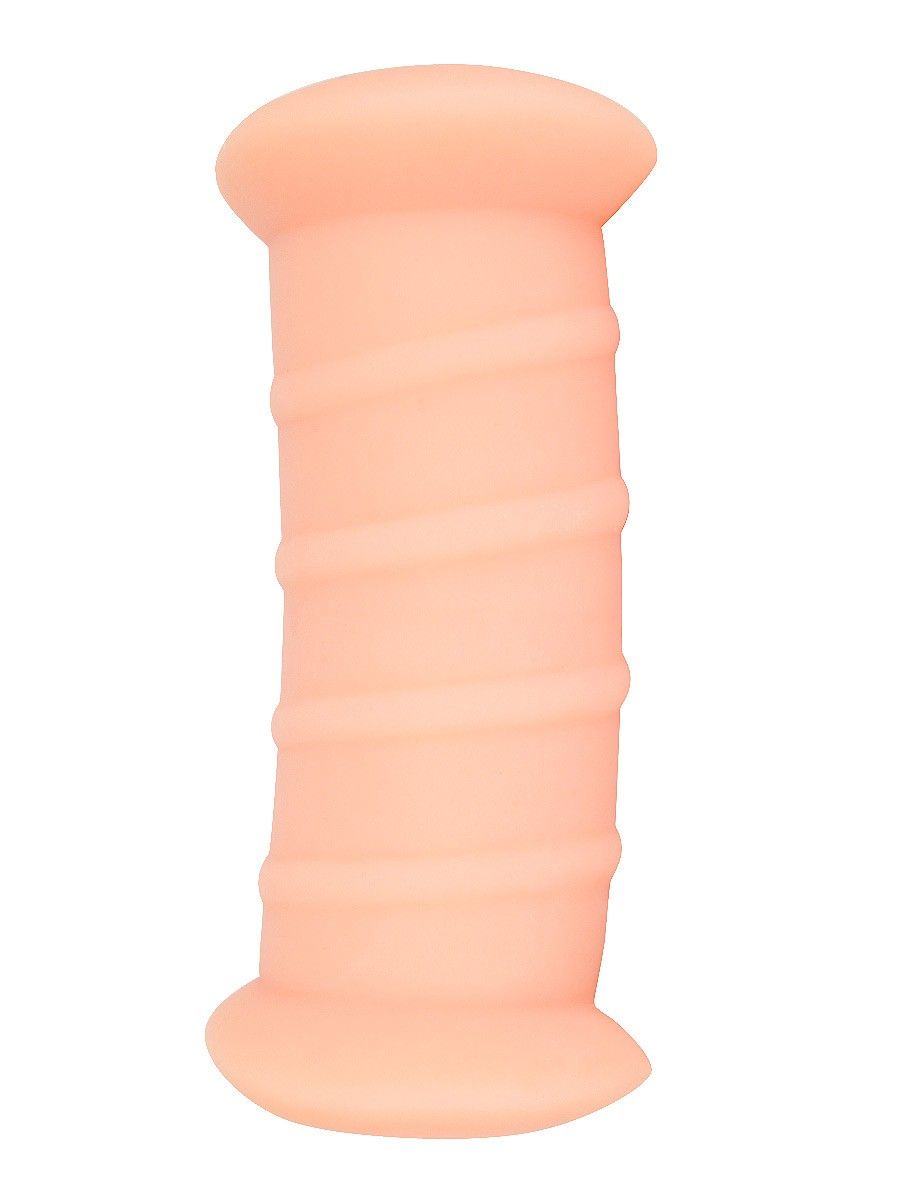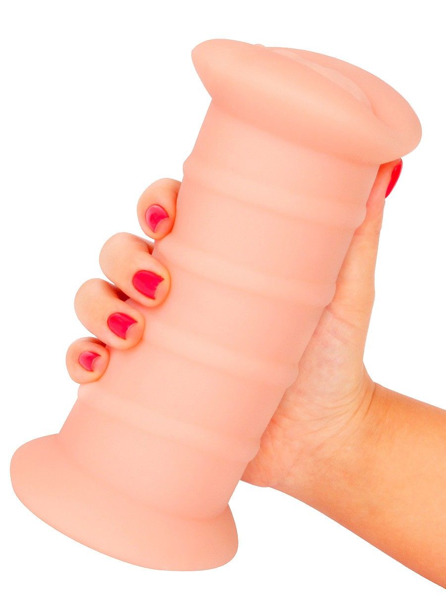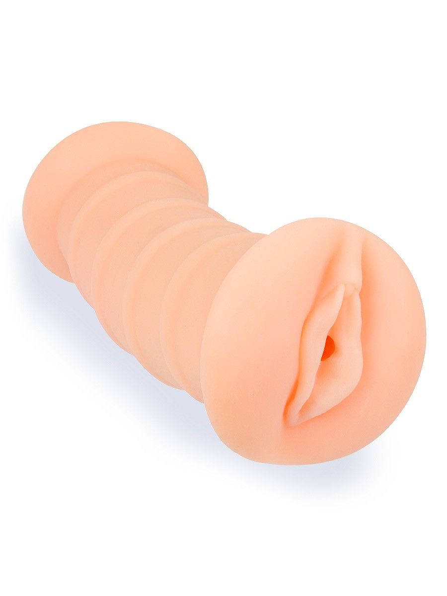 Телесный двусторонний мастурбатор с вибропулей и эрекционными кольцами в комплекте