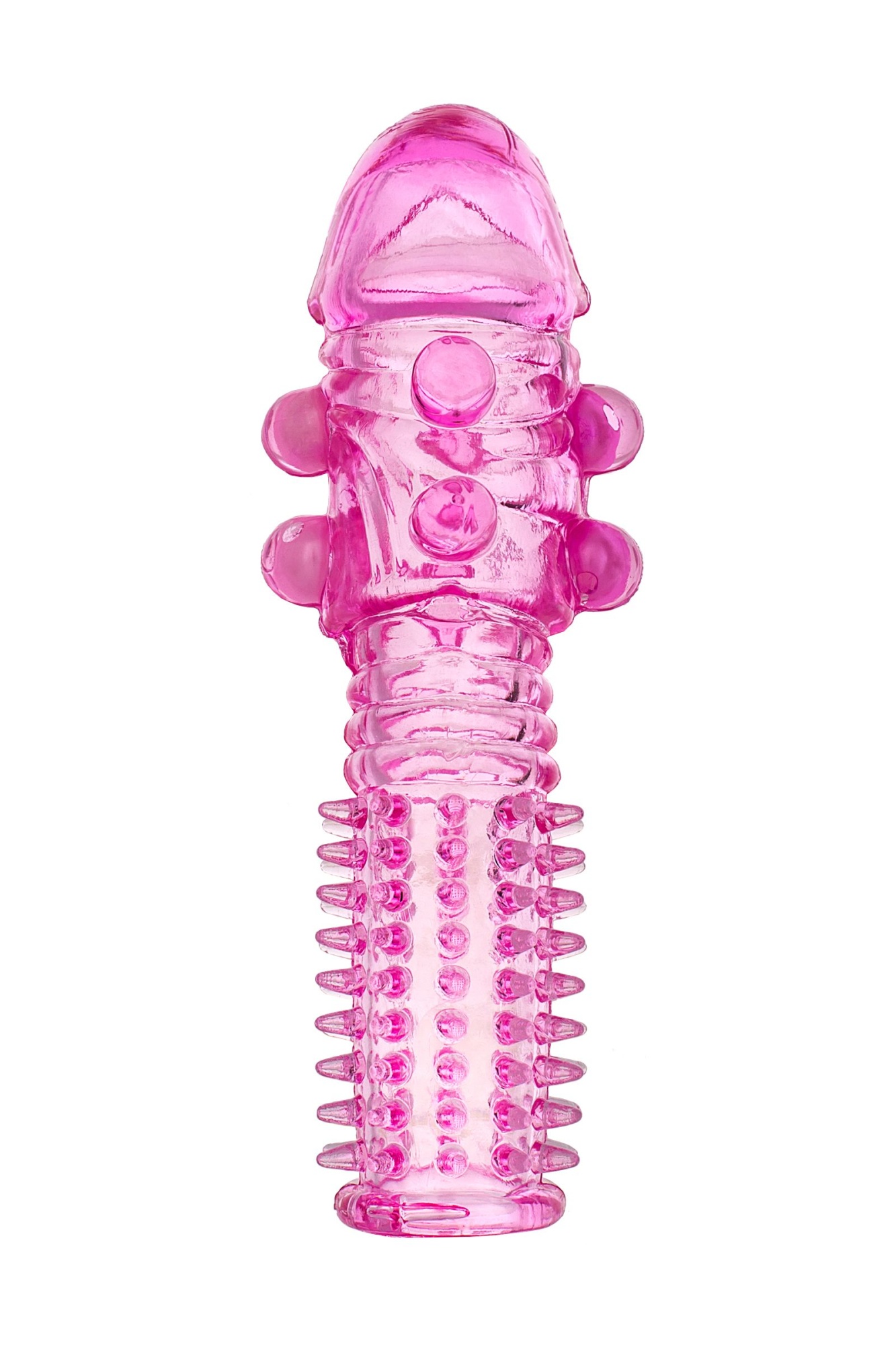 Гелевая розовая насадка с шариками и шипами - 14 см.