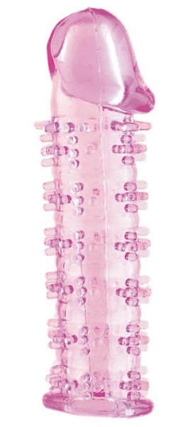 Гелевая розовая насадка на фаллос с шипами - 12 см. - lovestoryshop.ru