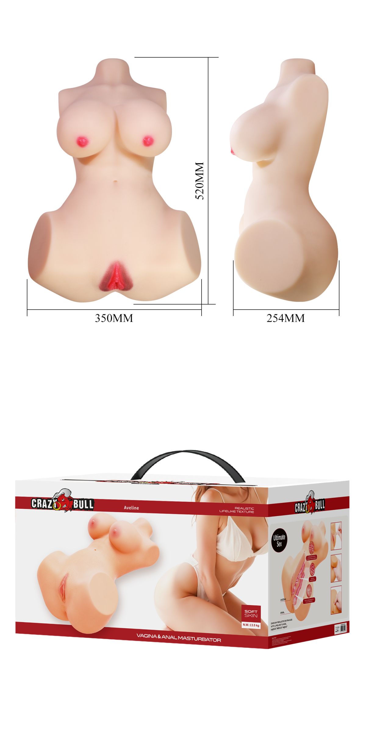 Мастурбатор-торс Aveline с 2 любовными тоннелями - lovestoryshop.ru