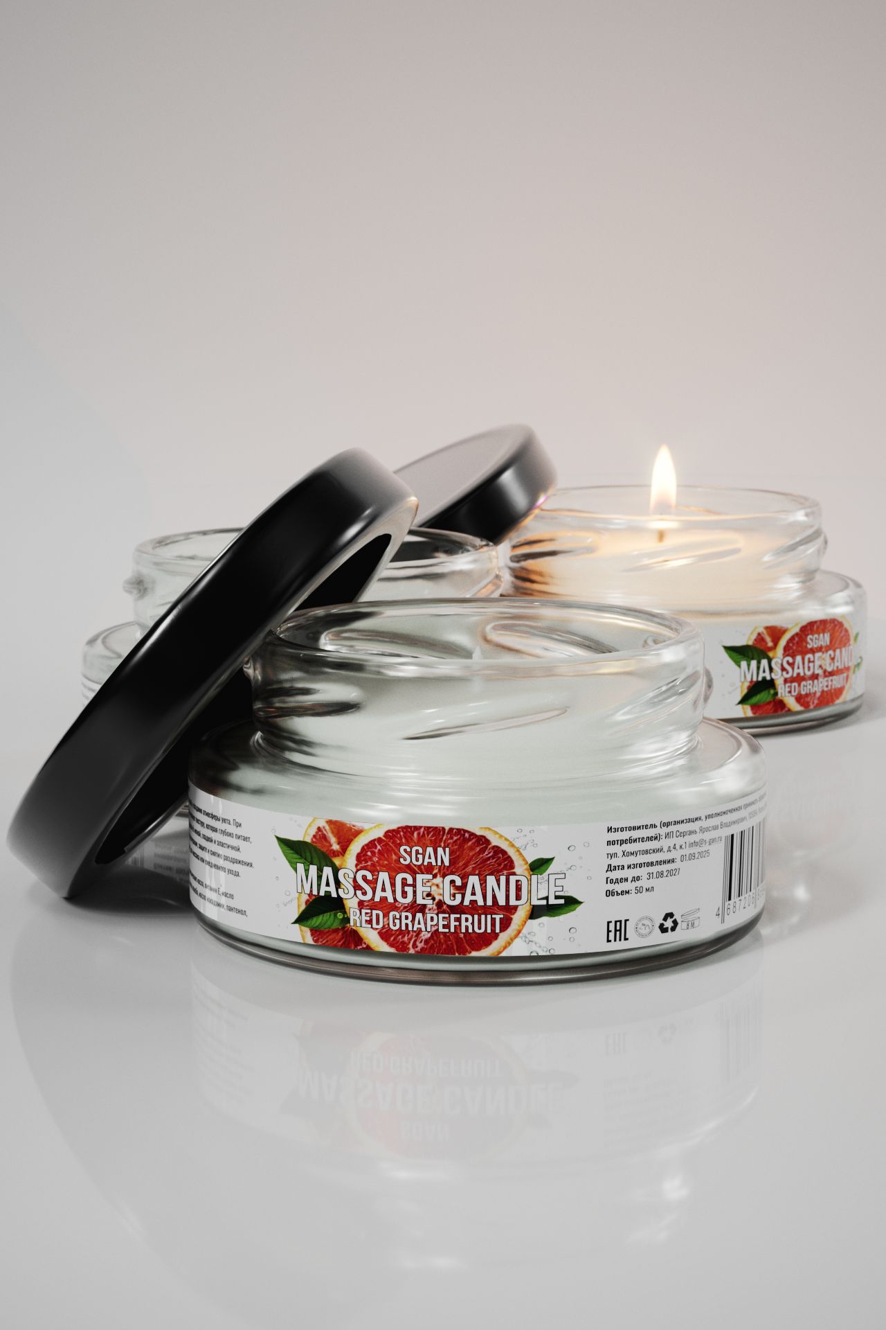 Массажная свеча с ароматом красного грейпфрута SGAN в стеклянной банке — это натуральное средство для расслабления, ухода за кожей и создания романтической атмосферы. Свеча изготовлена из 100% кокосового воска с добавлением ароматического масла янтарного мусса и хлопкового фитиля, что обеспечивает безопасное и чистое горение. При нагревании свеча превращается в тёплое массажное масло, которое глубоко увлажняет, питает и смягчает кожу, делая её шелковистой и ухоженной. Приятный аромат красного грейпфрута наполняет комнату уютом и гармонией.