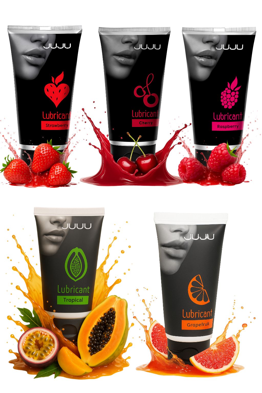 Набор из 5 съедобных лубрикантов JUJU (клубника, малина, тропические фрукты, вишня, грейпфрут) - lovestoryshop.ru