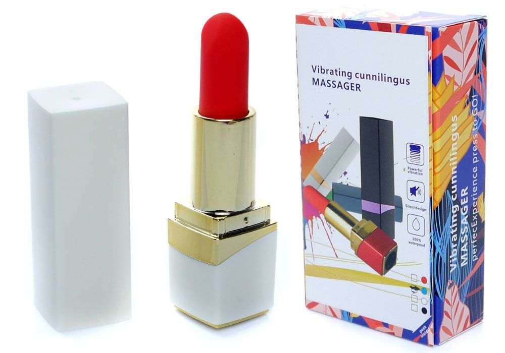 Белый мини-вибратор в форме помады - lovestoryshop.ru