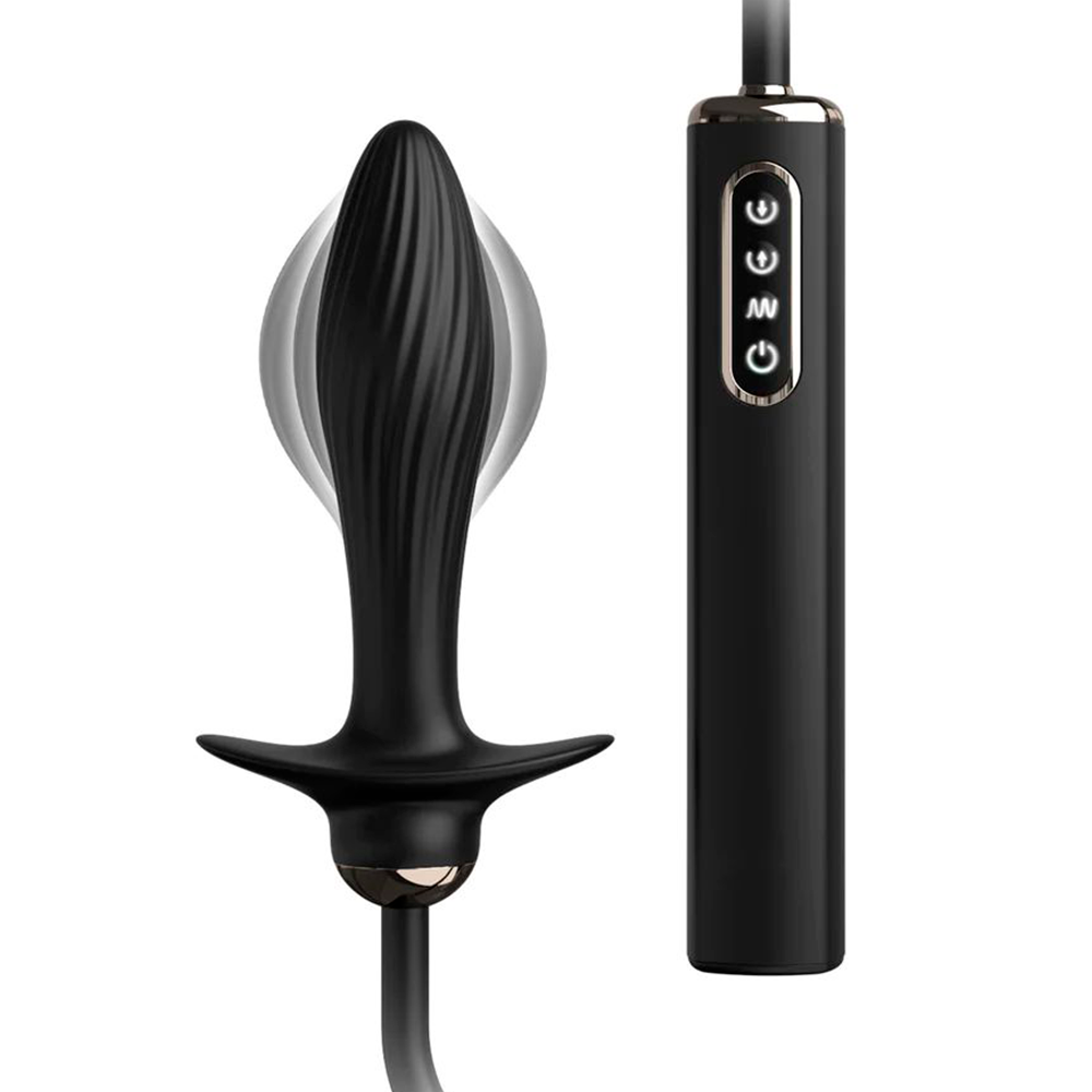 Надувная анальная пробка с вибрацией Auto-Throb черная
