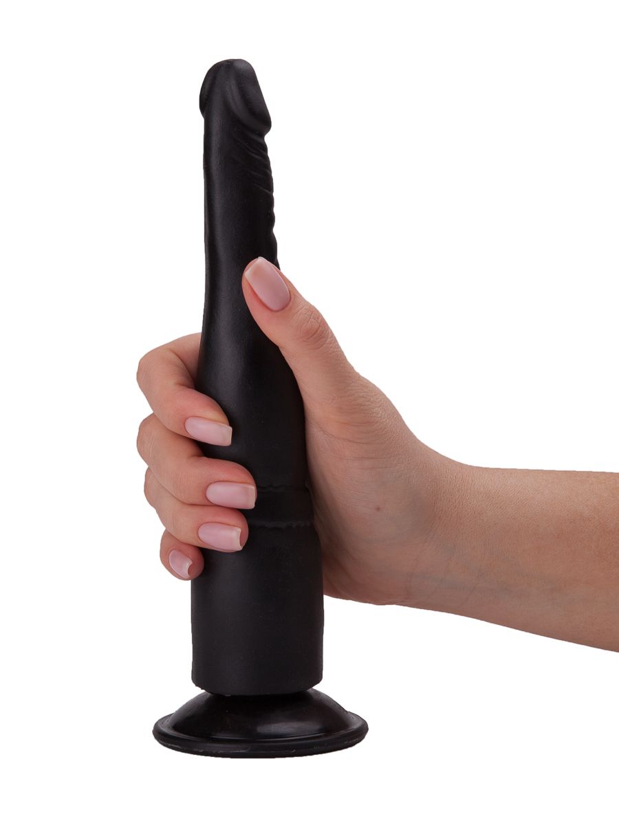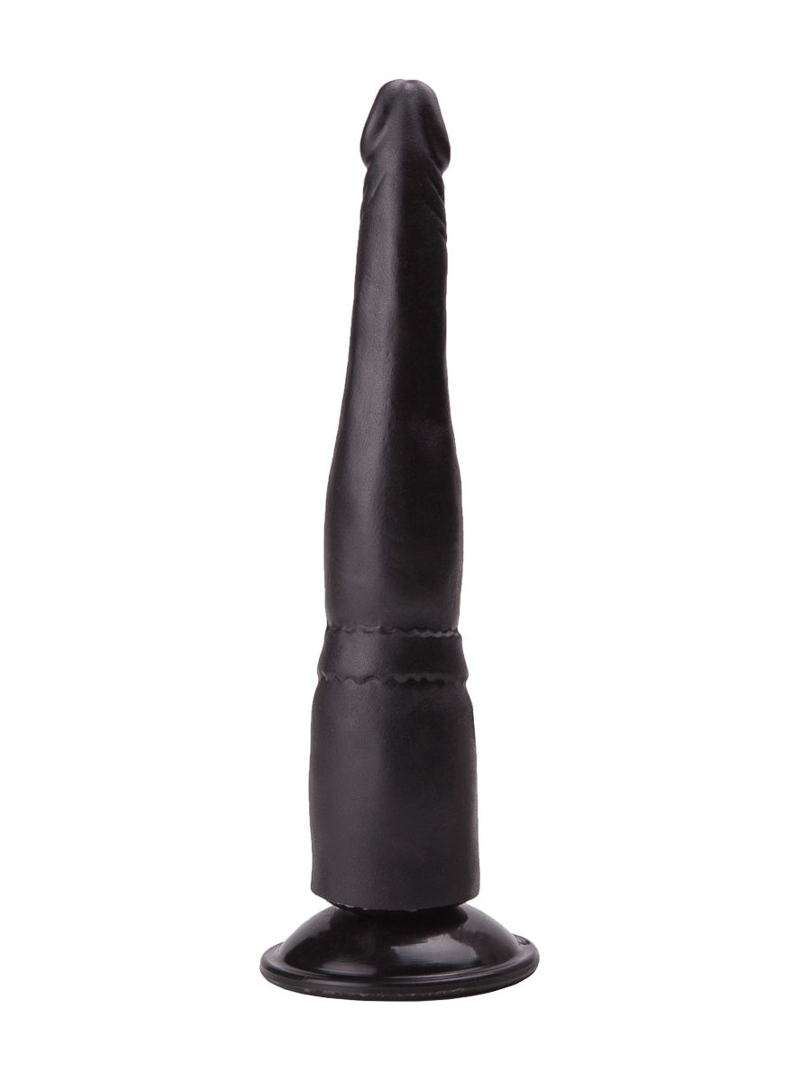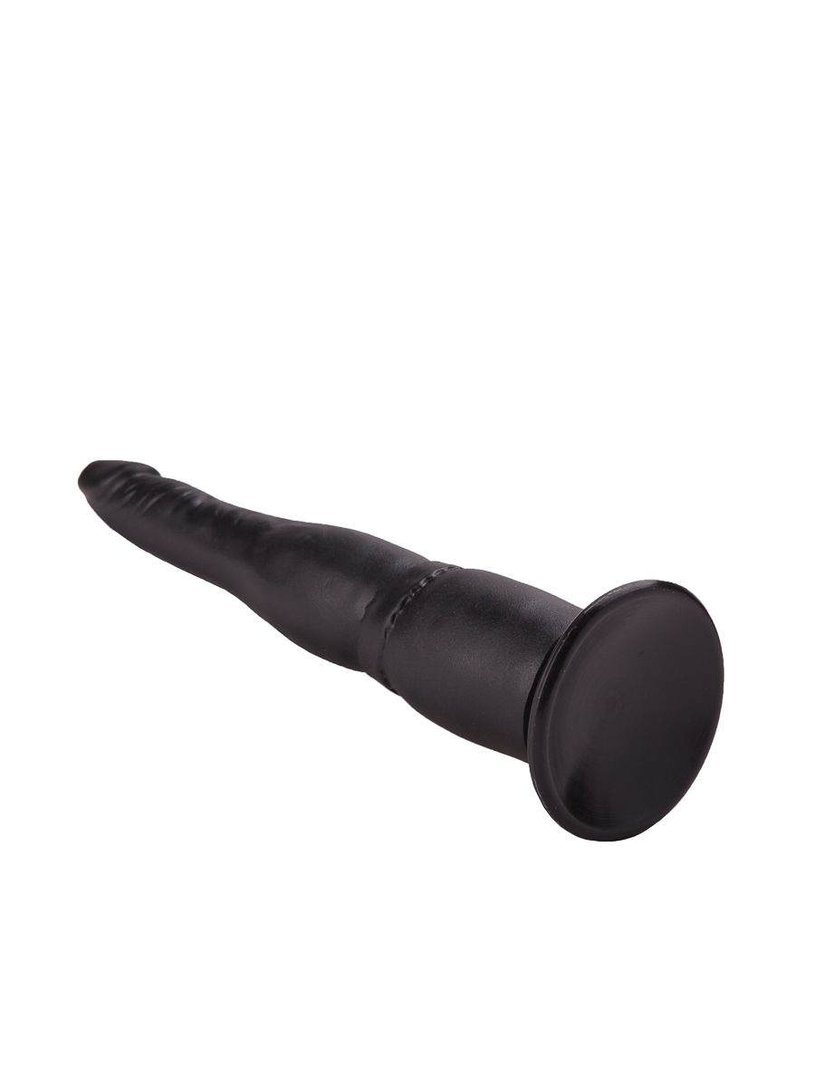 Этот тоненький чёрный фаллос из бархатистого на ощупь материала выглядит абсолютно реалистично: ярко выраженная головка, слегка вытянутая кверху, и легкий рельеф в виде складочек имитируют формы настоящего пениса.