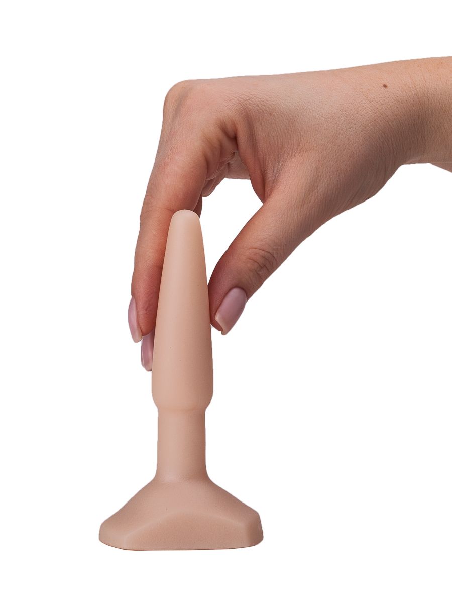 Эта телесная пробка классической конусообразной формы – лучшее решение для тех, кто только начинает своё знакомство с миром анальных ласк. Малые размеры пробочки и гладкая бесшовная поверхность гарантируют безболезненное проникновение в анус и плавное его заполнение. Широкое основание служит и для ограничения глубины погружений, и для устойчивости при установке стимулятора на ровную поверхность.