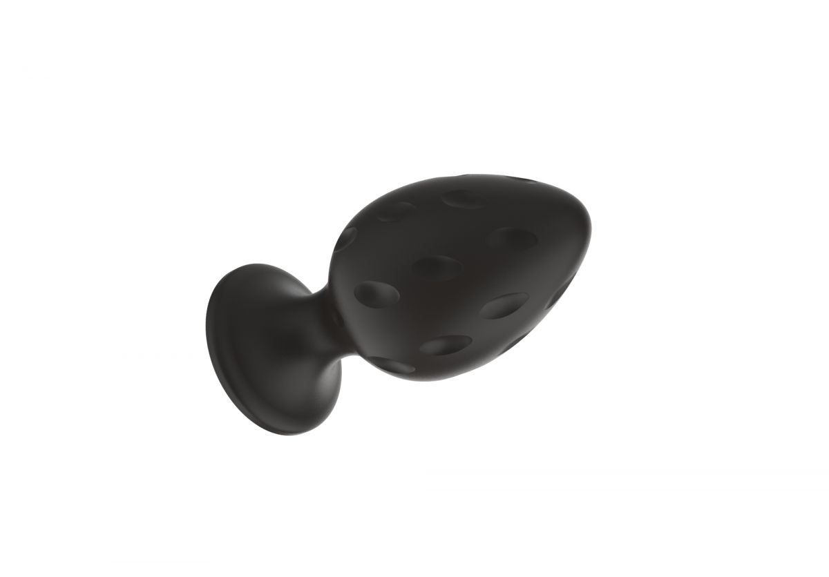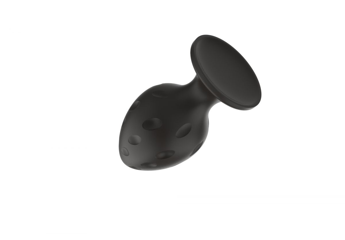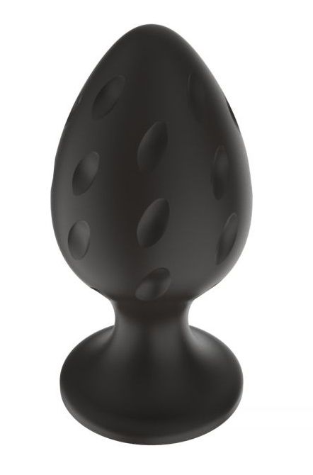 Черная средняя силиконовая анальная пробка с рельефом в виде углублений - lovestoryshop.ru