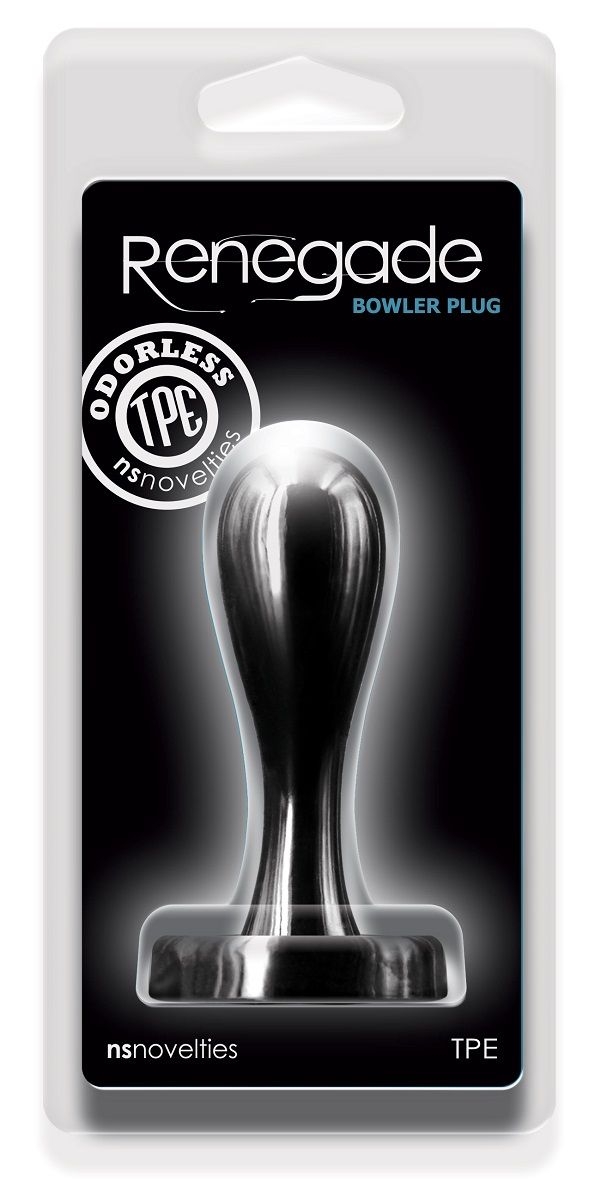 Черная анальная пробка Bowler Plug MD. Широкое основание для безопасного использования. Рабочая длина - 8,5 см.