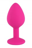 Розовая вибровтулка с фиолетовым кристаллом и пультом ДУ - 9 см.