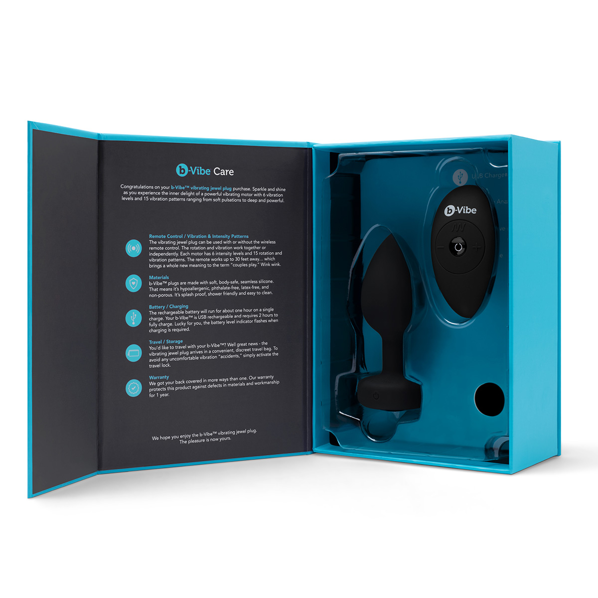 За счет зауженной формы и приятного медицинского силикона — пробка крайне удобна в применении. Обязательно добавляйте лубрикант на водной основе, чтобы сделать проникновение ещё более плавным. Внутри игрушки расположен мощный моторчик с 15 режимами вибрации и 6 уровнями интенсивности, ими можно управлять при помощи специального пульта на расстоянии до 9 метров.