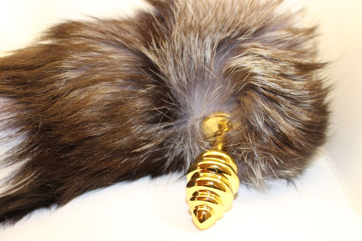 Металлическая рельефная анальная пробка с роскошным хвостиком из натурального меха. Рабочая длина - 6,5 см., диаметр - 2,6 см.
