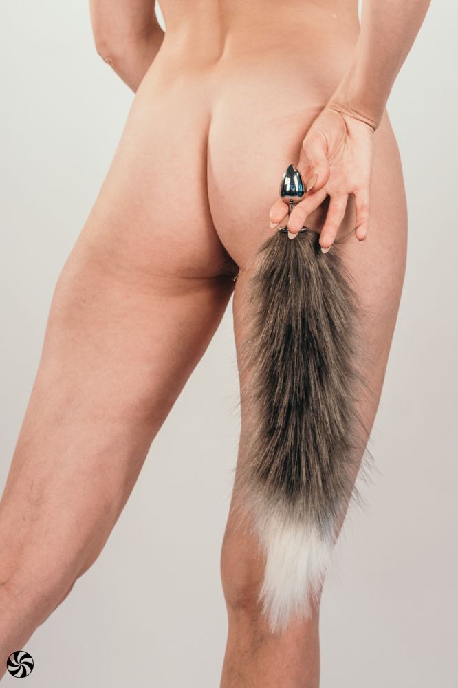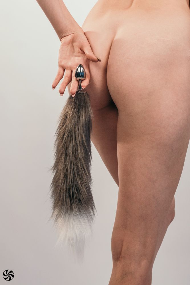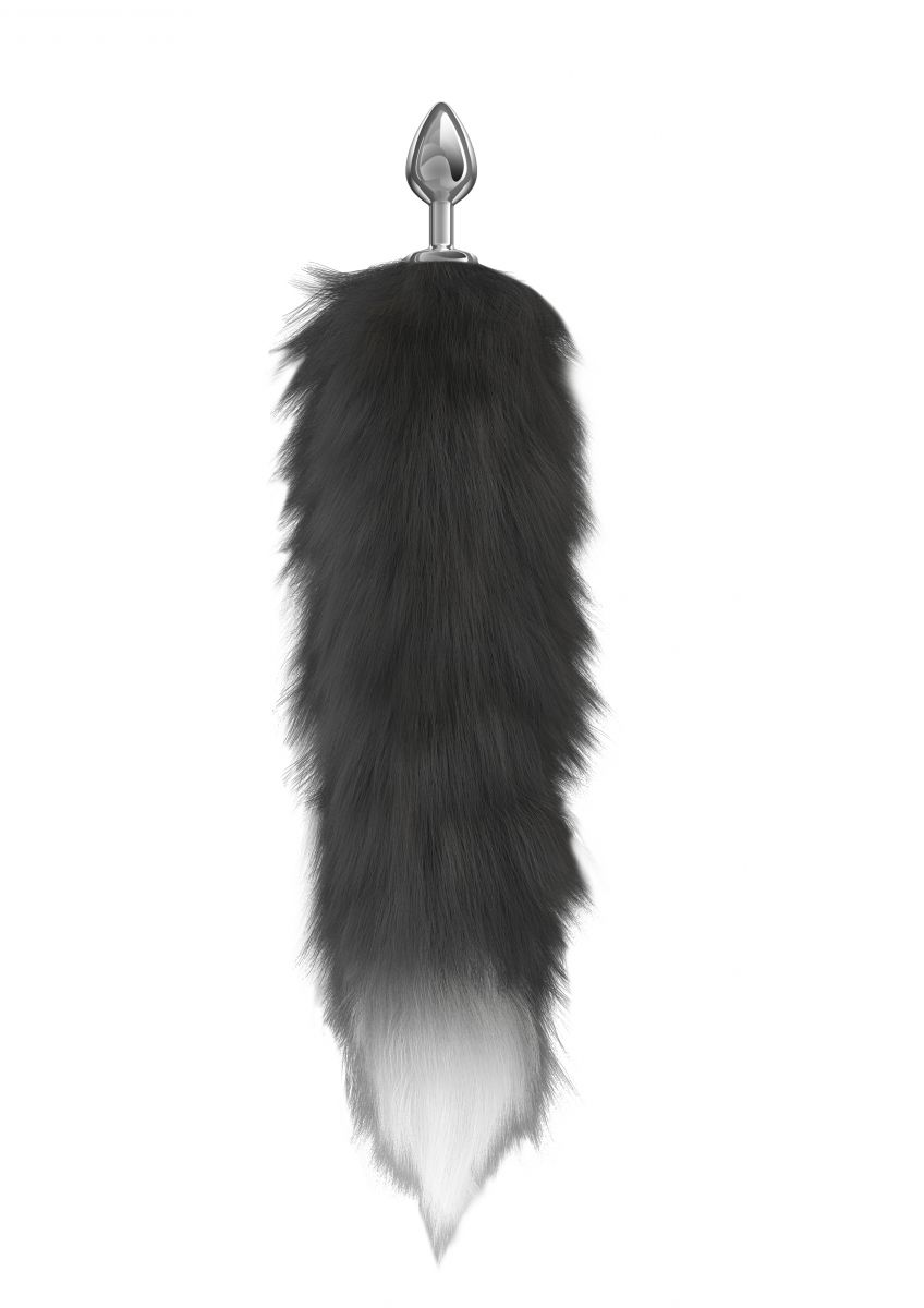 Серебристая анальная пробка с черным хвостом Galaxy - lovestoryshop.ru
