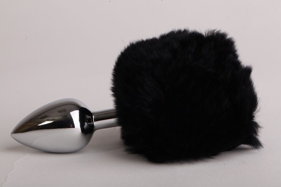 Серебристая анальная пробка c черным хвостом Задорный Кролик