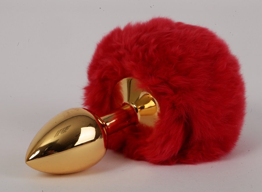 Золотистая анальная пробка c пушистым красным хвостом Задорный Кролик