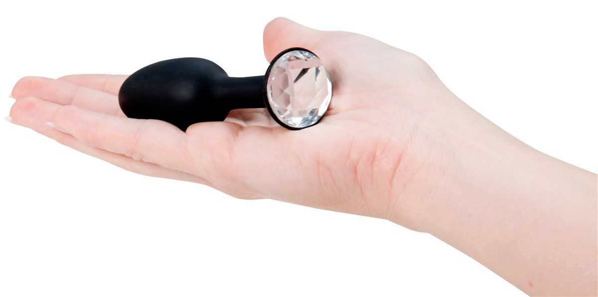 Чёрная анальная пробка с кристаллом в основании. Рабочая длина - 6,5 см.