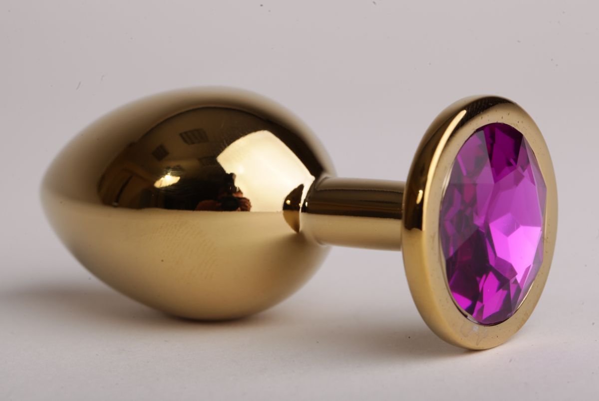 Золотистая анальная пробка с филетовым кристаллом - 8,2 см.