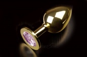 Золотистая анальная пробка с красным кристаллом - 9,5 см.