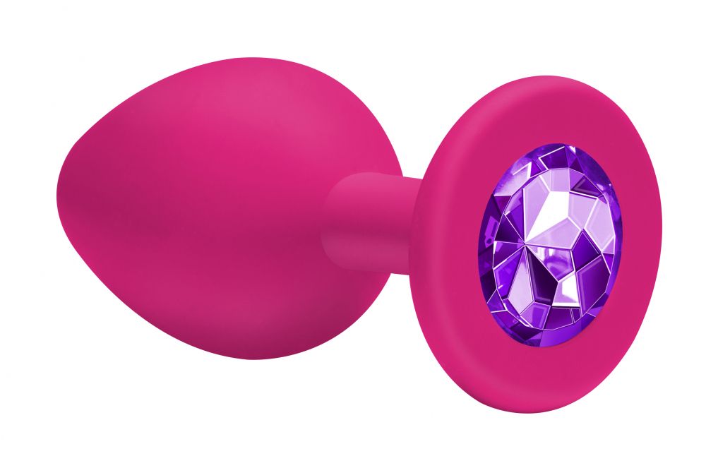 Малая розовая анальная пробка Emotions Cutie Small с фиолетовым кристаллом - 7,5 см.