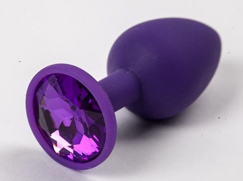 Фиолетовая силиконовая анальная пробка с фиолетовым стразом - 7,1 см.