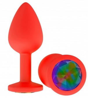 Красная анальная втулка с разноцветным кристаллом - 7,3 см.