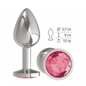 Розовая анальная втулка с прозрачным кристаллом - 7,3 см.