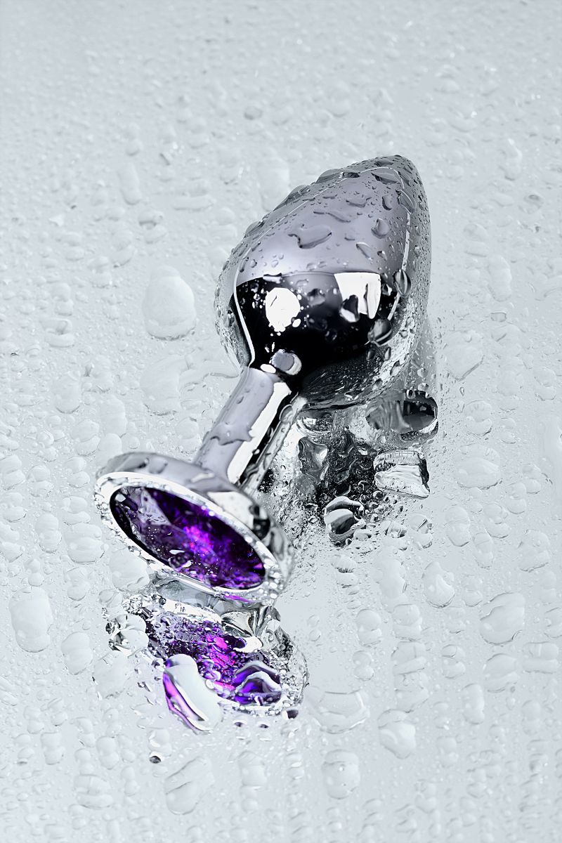 Анальная пробка с фиолетовым кристаллом ToyFa Metal - 8 см