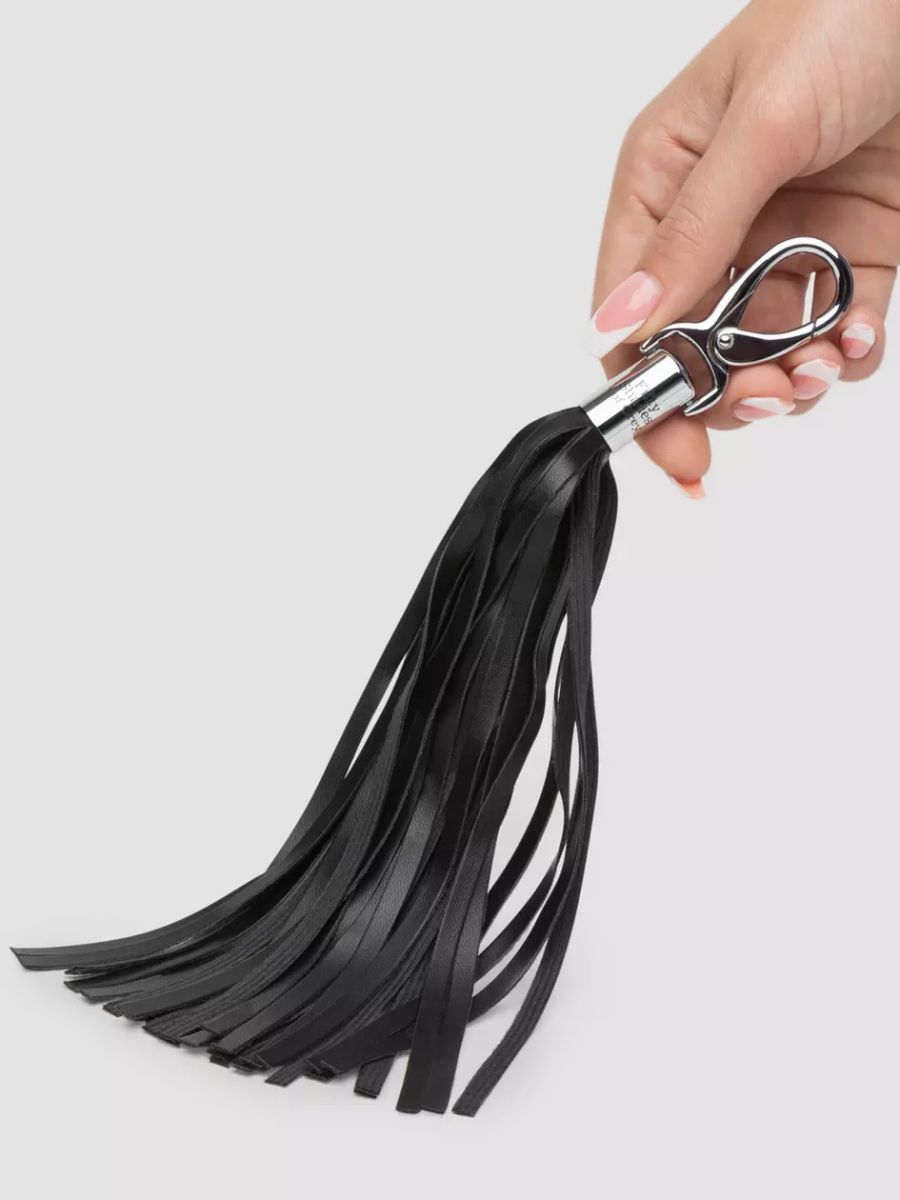 - флоггер с мягкими хвостами из искусственной кожи и небольшой золотой ручкой