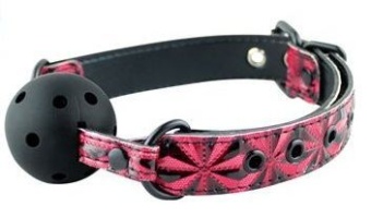 Кляп в виде полого шарика. В шарике имеются специальные отверстия для доступа кислорода. Лямки изготовлены из кожзама на удобных регулируемых застежках. Диаметр шарика - 4,5 см. Ширина лямок - 2,5 см.