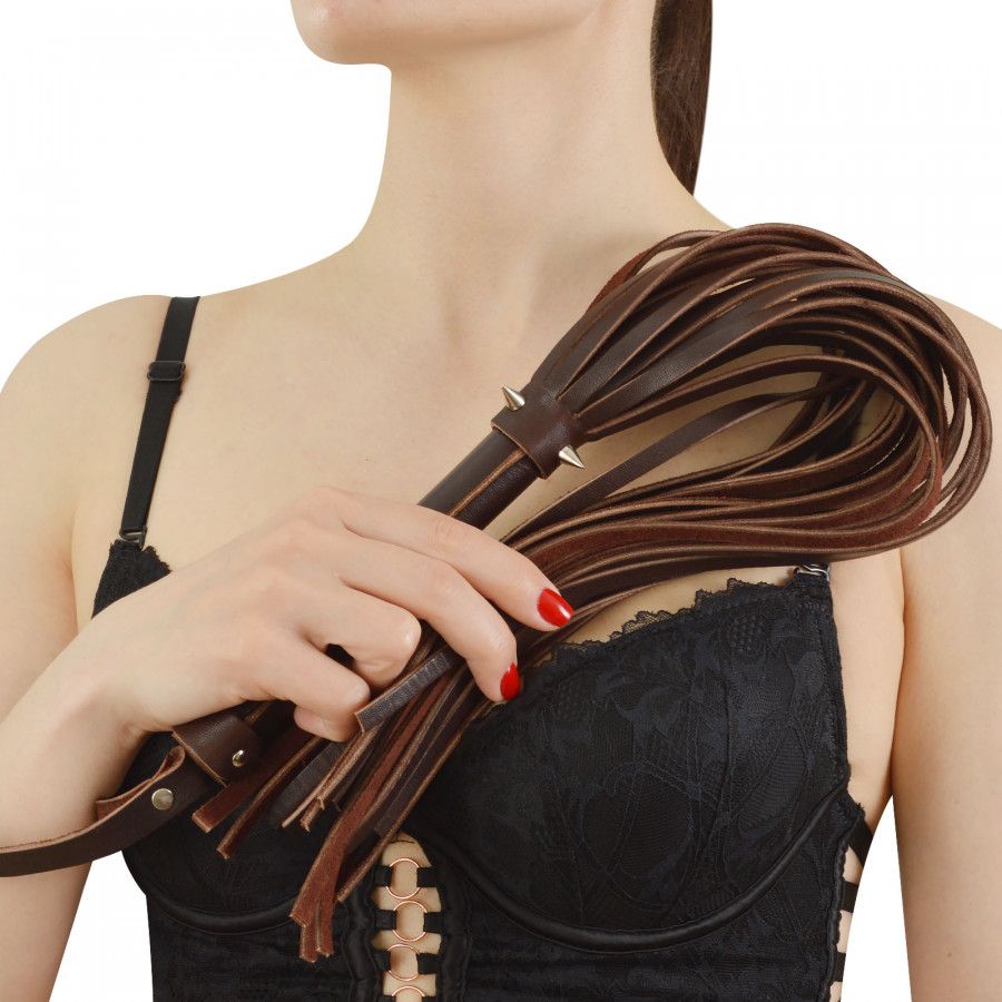 Коричневая кожаная плеть с шипами - 55 см. - lovestoryshop.ru