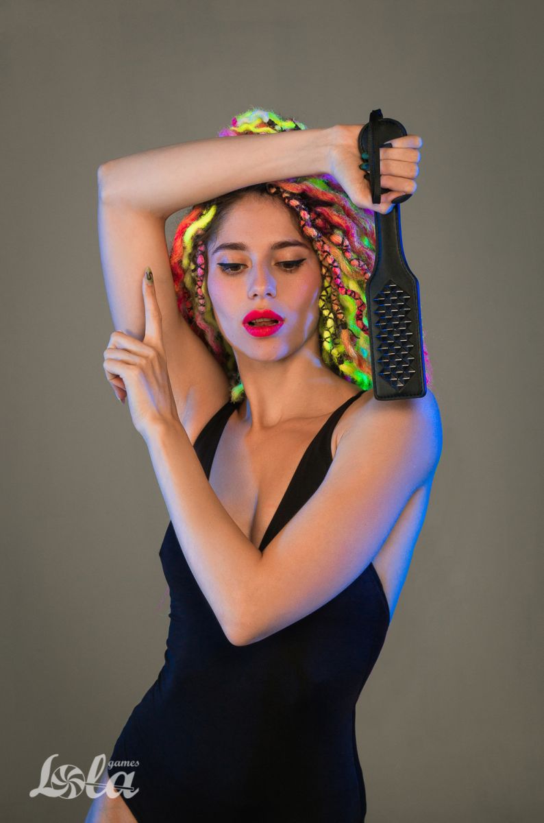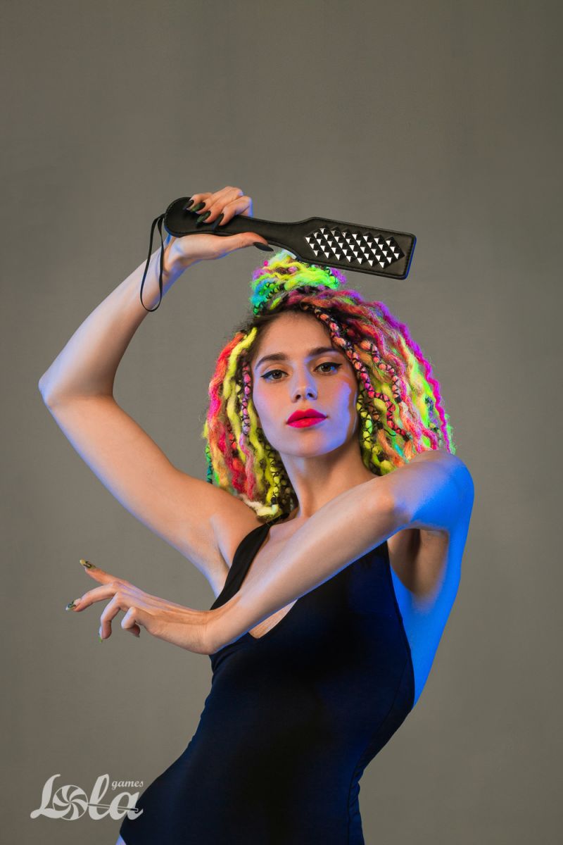 Отшлёпайте свою пассию, как следует! Девайс для ударов по мягким местам сможет обострить ощущения принимающей стороны, и подстегнуть чувства доминирующего. Привлекательный дизайн и конструкция Hot Spot для идеальных аксессуаров для мастера и раба. В меру упругая. Шлепалка Hot Spot имеет декоративные заклепки. Ширина - 6 см.