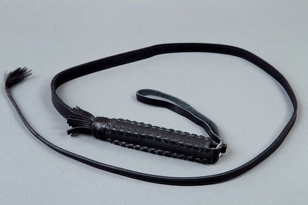 Хлыст с плетеной ручкой выполнен из натуральной кожи. Максимально удобная рукоять этого девайса прекрасно ложится как в женскую, так и в мужскую руку. Хлыст прострочен и собран из трех слоев хромовой кожи,на конце хлыста кисточка из синтетического волокна. Рукоять состоит из 5 частей,сплетенных между собой кожаным шнурком черного цвета. Ручная работа.