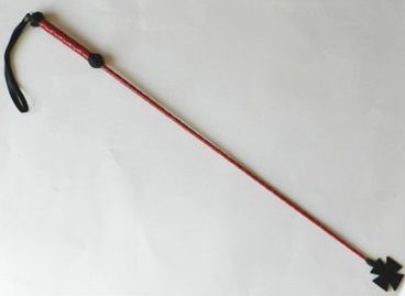 Плетеный длинный красный лаковый стек с наконечником-крестом - 85 см.
