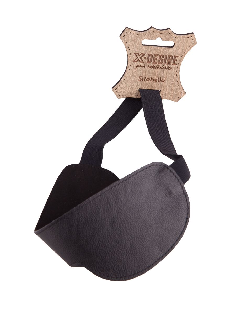Чёрная широкая кожаная маска на глаза - lovestoryshop.ru