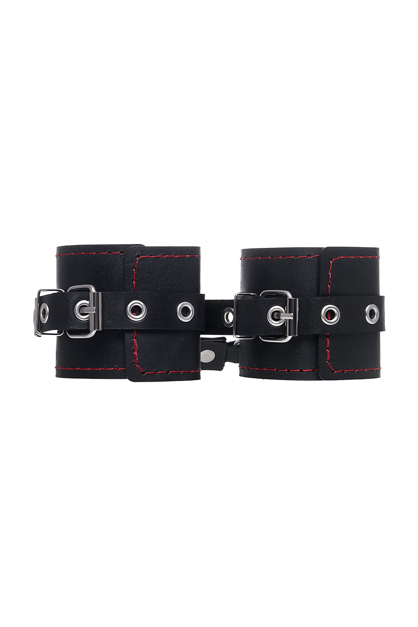 Однослойные наручники с красной строчкой Pecado BDSM черные