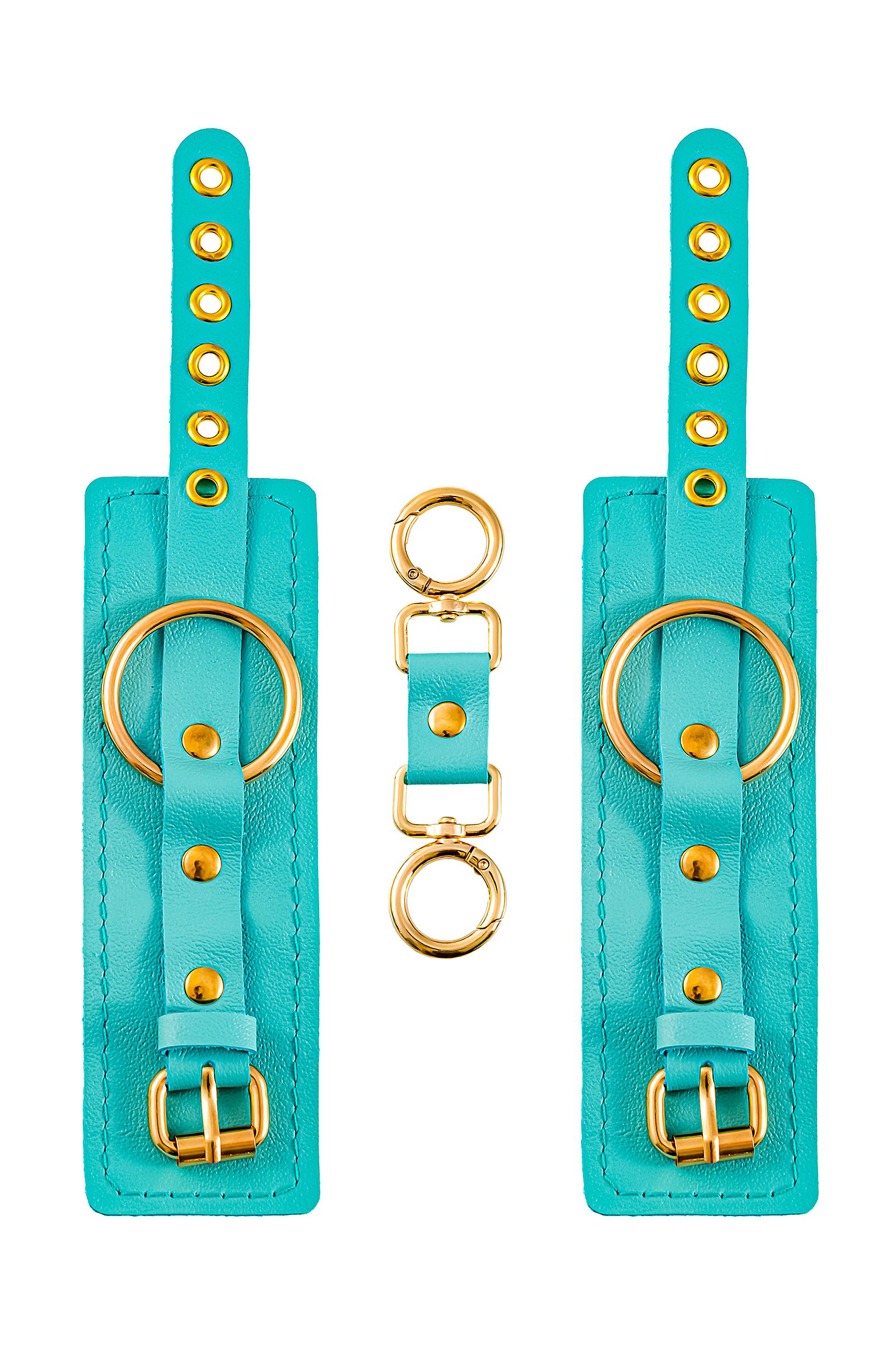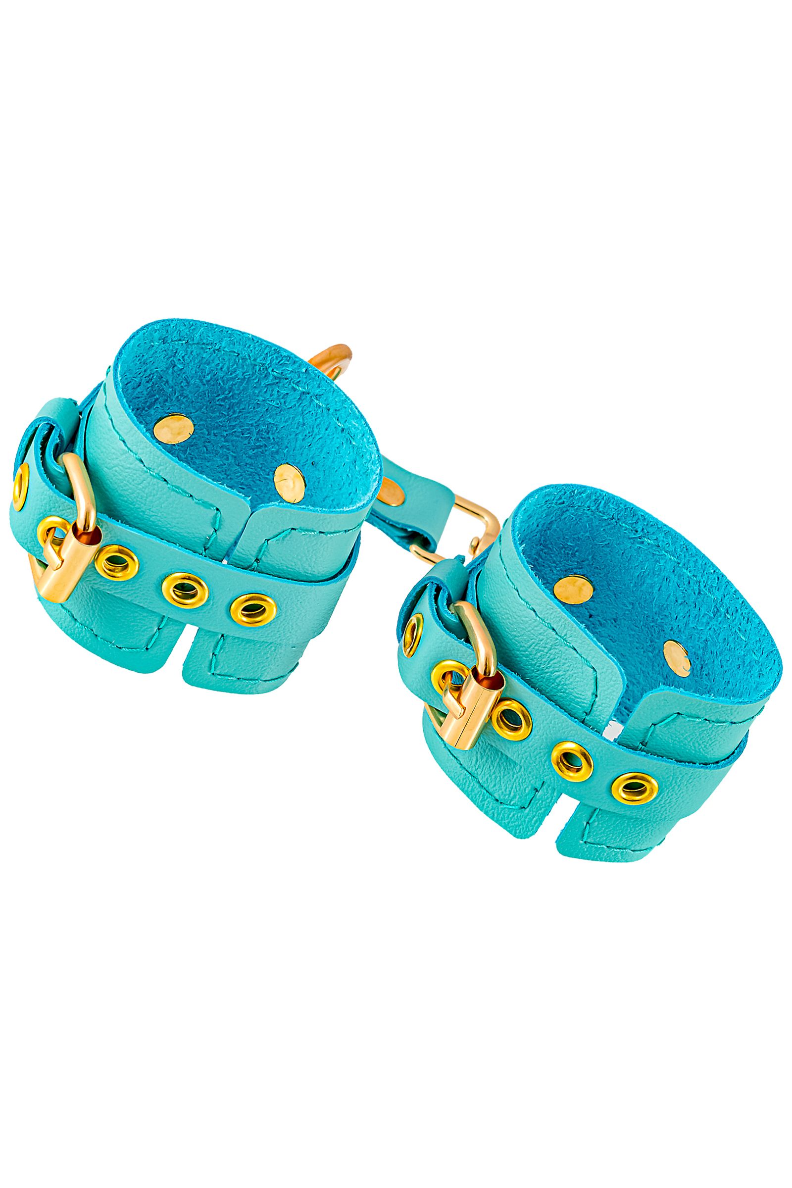 Голубые однослойные кожаные наручники - lovestoryshop.ru