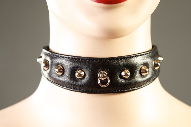 ОписаниеОшейник декоративный с кольцом - изысканный аксессуар из натуральной кожи, великолепно будет смотреться с вашим любым эротическим костюмом для сексуальных игр. Ошейник, украшенный сферическими заклепками, идеально подходит для повседневной носки. Минимальный обхват шеи - 34 см.,максимальный - 41 см.