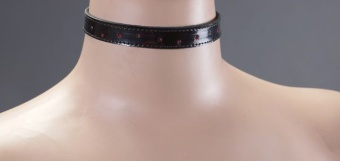 Ошейник со стразами - изысканный аксессуар из натуральной лаковой кожи, великолепно будет смотреться с вашим любым эротическим костюмом для сексуальных игр. Данная модель идеально подходит для повседневной носки. Ширина - 1,5 см.
